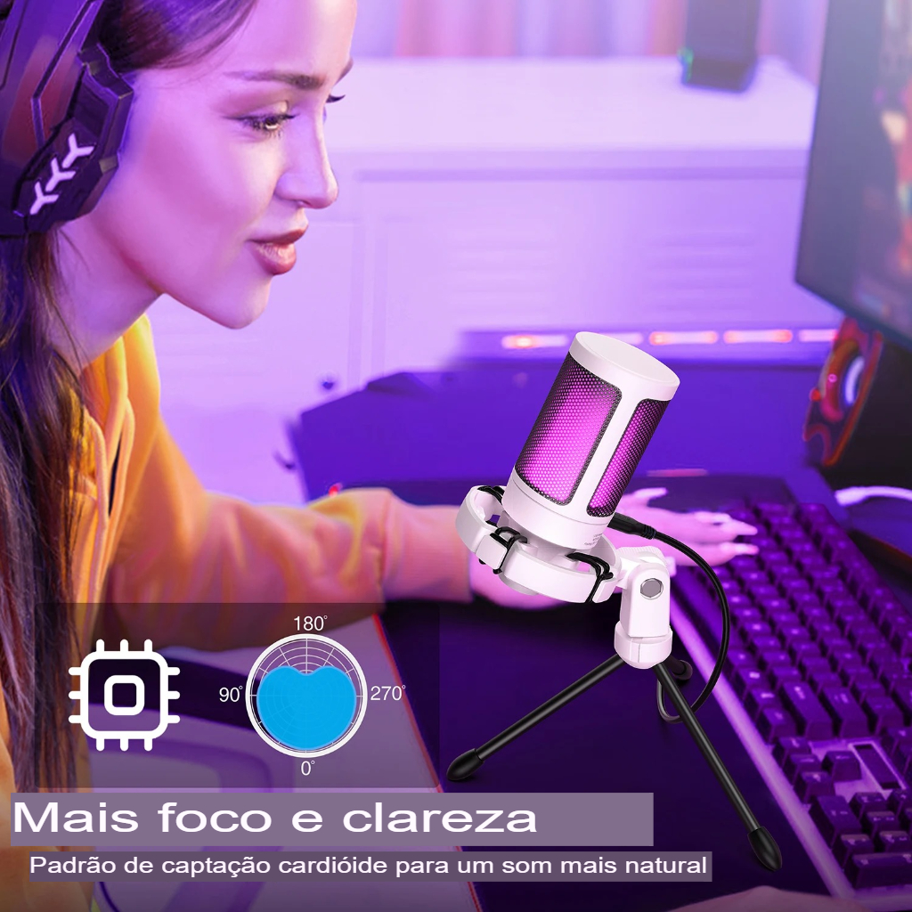 O microfone AmpliGame A2W foi projetado para oferecer áudio de alta qualidade 🎶, garantindo uma experiência excepcional em suas gravações. Com um padrão de captação cardióide 🎯, ele foca no som proveniente da frente do microfone, proporcionando maior clareza e precisão ✨, ideal para streaming de jogos 🎮 ou gravação de voz 🎙️.