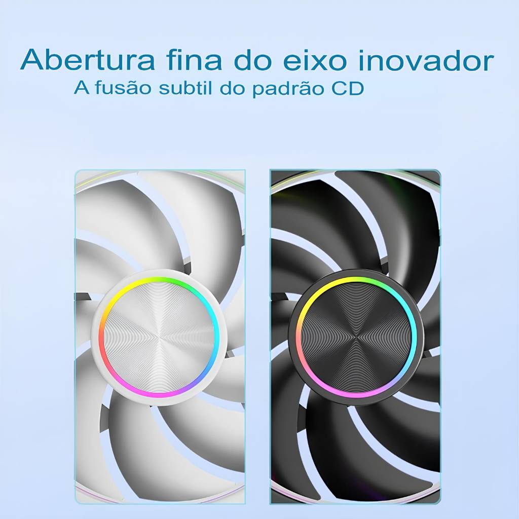 🌟 Visual único – Destaque seu setup com um efeito de profundidade e luz que poucos ventiladores têm.